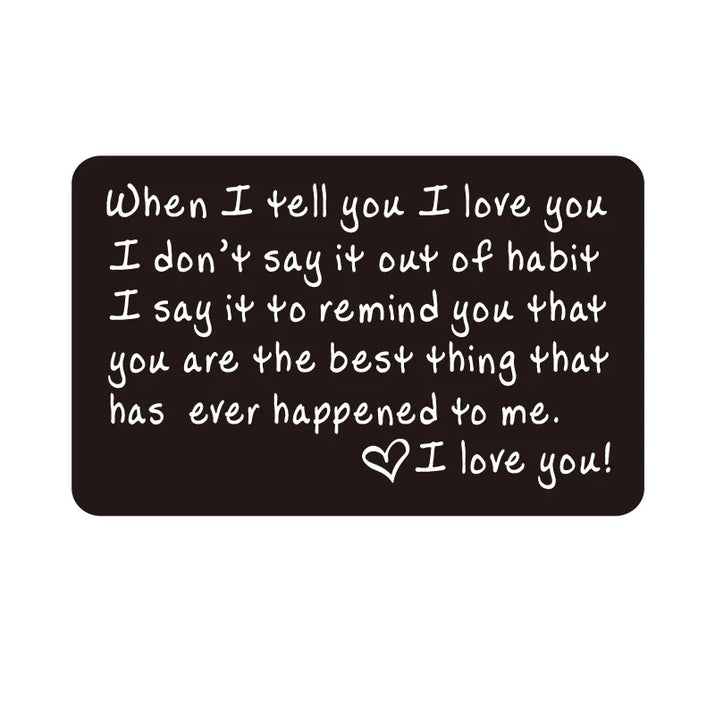 This heartfelt wallet insert card is a daily reminder of your love, beautifully engraved and made to last, making it the perfect gift for celebrating special moments together.