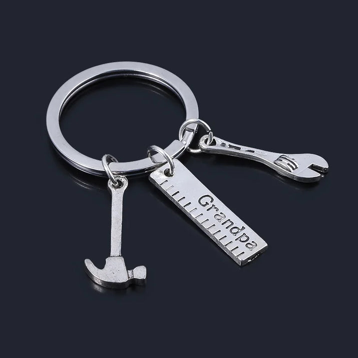 Answer 2: The keychain pendant is approximately 1.2 inches in size and includes detailed mini hand tool charms such as a hammer, wrench, and screwdriver.